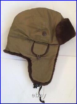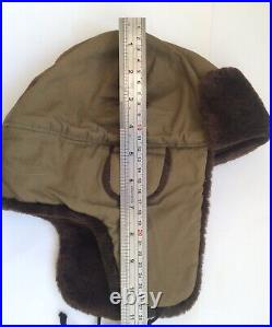 Here is one rare China PLA winter cotton cap with flaps(1957, original). Color is light green, generally color of 1950s PLA cap and uniform is always yellow. Its PLA/PVA official cap, produced by PLA factory. Two ink stamps inside show, factory number, cap number No. Cotton inside got removed, so the cap is thin on top, cottons in flaps are still there.
