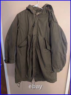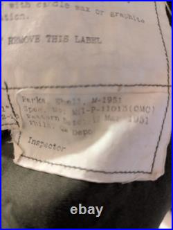 50s Vtg US Army M-1951 Hooded w Frieze Liner FISHTAIL PARKA Large Shell Military