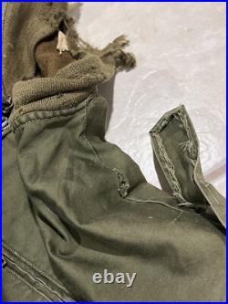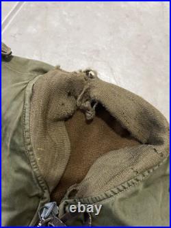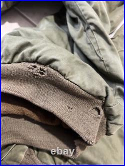 The wool knits on the jacket need to be replaced. The wool lining and the shell are in a good used condition apart from a button missing on the epaulets. Size tag has washed away. Measurements are as follows & approximate. Pit to pit: 26.5 inches.