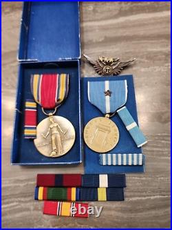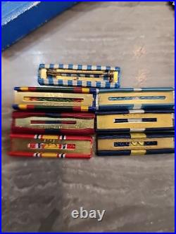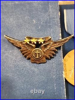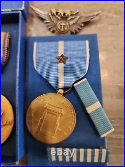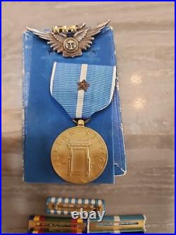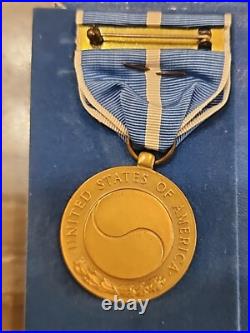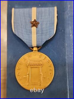 Note: Gold stars are add to COMBAT WINGS post 1970, wings are made 1950s. During World War II, numerous fleet requests occurred to recognize the work of the enlisted aircrew members flying in combat, the result was the creation of the Air Crew Insignia on 18 May 1943. While primarily an enlisted insignia, officers were eligible if they met the same criteria of Bureau of Naval Personnel (BUPERS) Circular Letter 90-43. The design was essentially the same as today's insignia except all pewter silver with no gold. A subsequent BUPERS Circular Letter 395-44 dated 30 Dec 1944, changed the design to the same as today with the modification of the gold center disc. In 1958, the insignia was redesignated the. In 1978, the Navy removed the insignia as authorized wear and then in 1994, the Marine Corps reestablished the insignia as it is known today as the Marine Combat Aircrew Badge. It is a decoration of the. Which is awarded to those enlisted personnel who have served as aircrew members on board combat flights. For those who have participated in actual combat missions, gold service stars. Are worn pinned to the top of the decoration. MCO 1000.6G Para 3310.4. Upon earning more than three gold stars, silver stars are awarded in recognition of three gold stars, meaning three silver equates to nine gold plus the initial award of the combat aircrew device. MCO P1020 Para 4002.1F. The Marine Combat Aircrew Badge can be issued to service members of both the Marine Corps and United States Navy (while serving in a Marine Corps aviation squadron). Current regulations require a set number of combat'points' to be earned before wear is authorized.It is not authorized to wear both the Combat Aircrew and Naval Aircrew pins at the same time. If an individual service member has been awarded both badges, they may decide which pin to wear on their uniform. The Korean Service Medal (KSM) was a military award for service in the United States Armed Forces and was established November 8, 1950, by executive order of President Harry Truman. The Korean Service Medal is the primary US military award for service or participation in operations in the Korean area during the Korean War between June 27, 1950, and July 27, 1954.