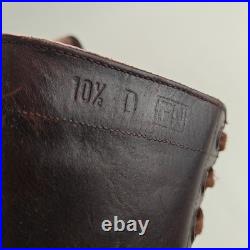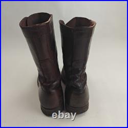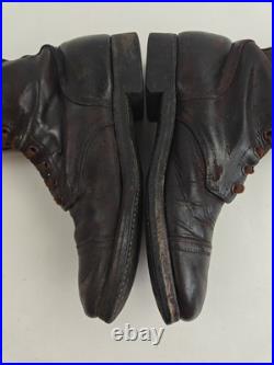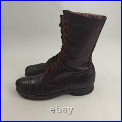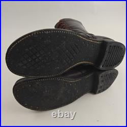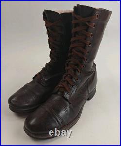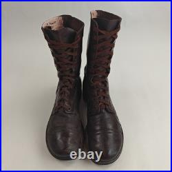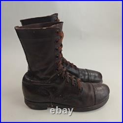 Korean War US Army Endicott Johnson EJ Jump Combat Boots Dated 1950 Size 10.5. Boots in good vintage condition. Show a red tint from assumed polish over the years. Endicott Johnson EJ Stamp on bottom as shown. Heel drag and other wear from age.