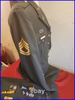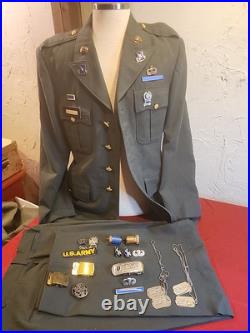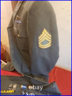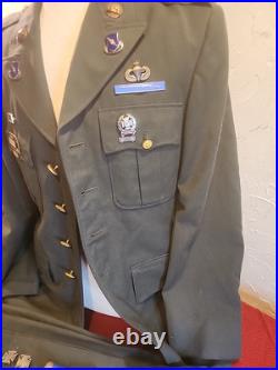 The pants are also in great shape other than one of the belt lups has some loose and need restitched. The pants are size 34x36. It has a name other than Humphrey and i believe the pants were reissued. The extra insignia is all in good shape except the combat infantryman badge is twisted.