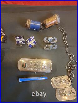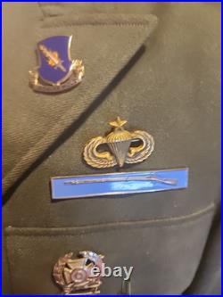 Here is a nice 1950s Army Paratrooper grouping up for grabs. The jacket is in great shape and is size 40L. It has some insignia on it such as DIs, name tag, presidential unit citation, paratrooper badge marked sterling, combat infantryman badge marked sterling and Army Expert marksman badge. The name tag on the jacket reads Humphrey.