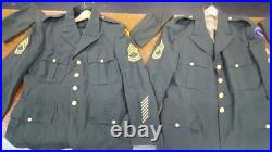 Listing includes: Two Uniform Jackets, Two pairs of trousers, One shirt, 3 hats. One uniform jacket is a 34 long with 38 x 34 Poplin trousers and size 7 hat. One uniform jacket is a 44R with 39 x 36 Poplin trousers and two size 7 hats. The one long sleeved cotton shirt is in fair shape with tons of wrinkles and is 16 1/2 x 33. All brass eagle buttons are intact. Prior service patches noted as well as a Shaef. No rips, tares or holes.Mostly just wrinkled with prior starching still present. Governor's Antiques and Architectural Salvage has been in business for over 50 years. One of central Virginia's best kept secrets, we are right outside of Richmond in Mechanicsville VA. We appreciate the opportunity to earn your business.
