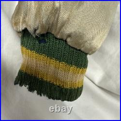 Probably a bit fragile to be worn- more of a collectible or museum piece at this point. Despite all the flaws, this is still a rare and amazing piece. May have originally been made for children. Please compare measurements with a jacket that fits you. Pit to pit: 16 1/2. Collar to bottom of jacket: 21. Sleeves (pit to cuff): 18. Shoulder to shoulder: approximately 15.